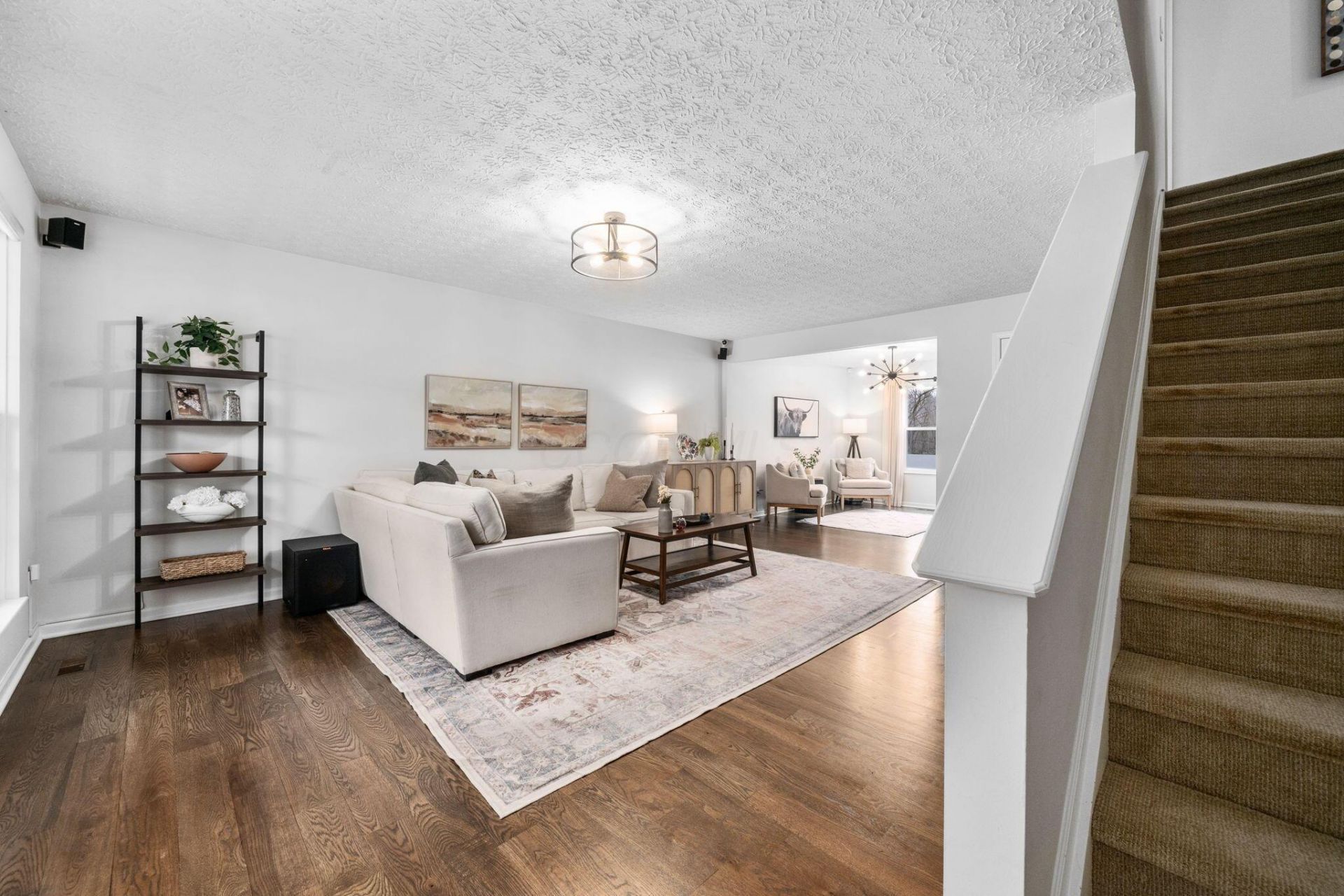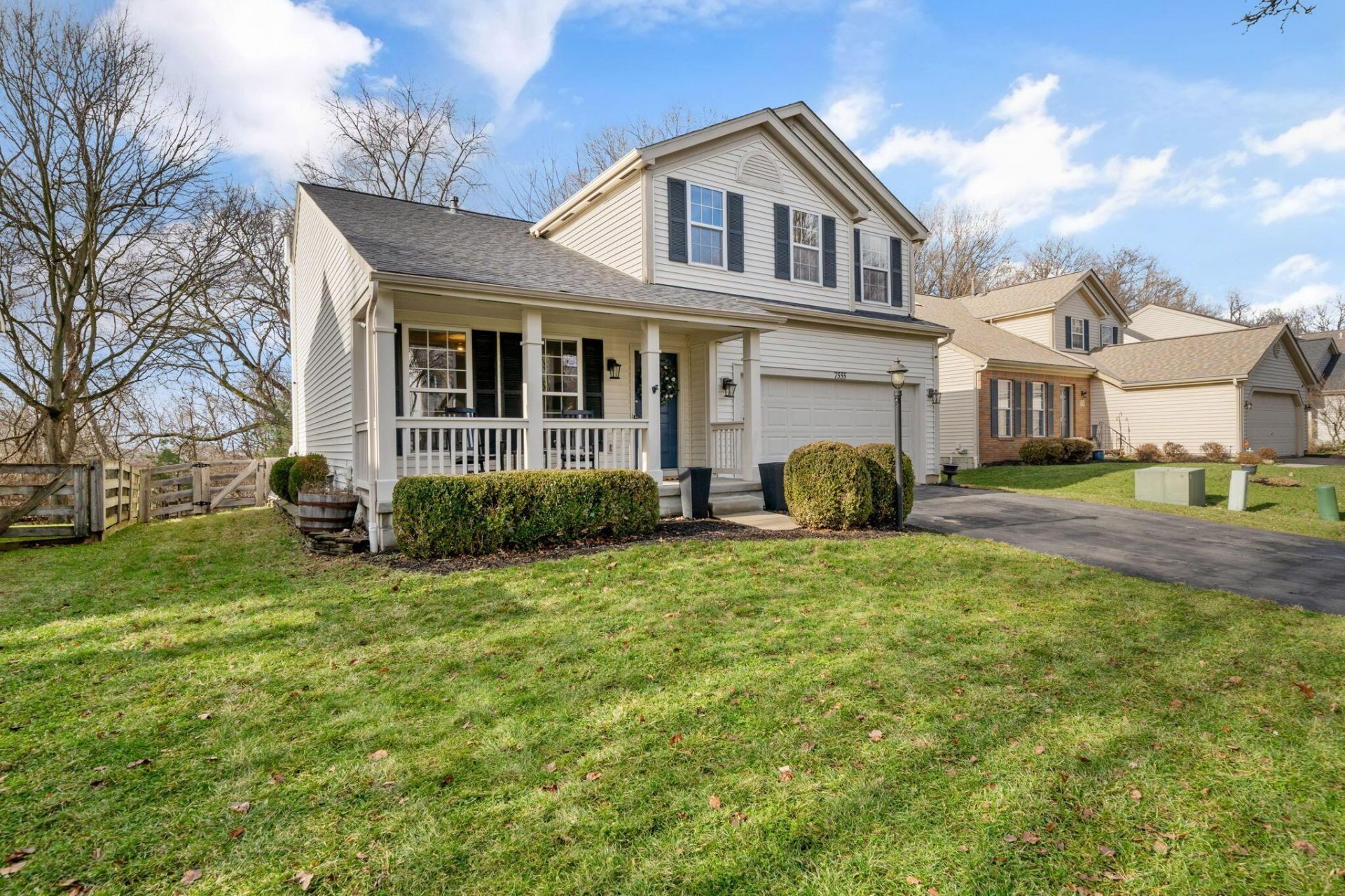 Tucked on a quiet cul-de-sac, 7555 Dover Ridge Court offers a rare blend of thoughtful updates, inviting design, and a truly exceptional natural setting. Backing to protected wooded land and Blacklick Ridge Community Park, the property provides a sense of privacy and connection to nature that is seldom found.Inside, warm hardwood floors extend throughout the main level, complementing a light-filled, open layout designed for both everyday living and effortless entertaining. The updated kitchen features freshly painted cabinetry, new appliances, a center island, and an adjoining dining area with views of the wooded backdrop. A sliding glass door opens to an elevated deck, perfect for morning coffee or evening gatherings.The living spaces are both comfortable and refined, including a spacious great room and an additional sitting area accented by custom built-ins, offering flexibility for relaxation or work-from-home needs.Upstairs, four well-proportioned bedrooms include a serene primary suite with a generous walk-in closet and an updated bath featuring dual vanities. New carpeting enhances comfort throughout the upper level.Extensive improvements provide peace of mind, including a new roof, water heater, updated electrical fixtures, water softener, reverse osmosis system, and more. Additional highlights include a mini-split system in the primary bedroom and an electric vehicle charging outlet in the garage.Outdoors, the fully fenced yard and mature trees create a tranquil retreat, with direct adjacency to parkland offering trails and natural beauty just beyond your backyard.A beautifully maintained home where comfort, updates, and setting come together effortlessly.
